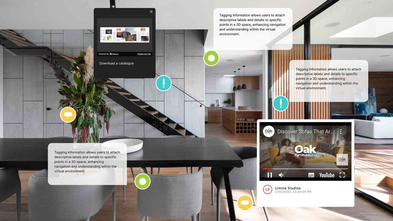 Virtual tours offered by Limina Studios are unique in that we integrate VR technology and digital twins. The content we create is incredibly immersive and interactive, delivering a sense of presence that makes it feel like you are physically in the space.