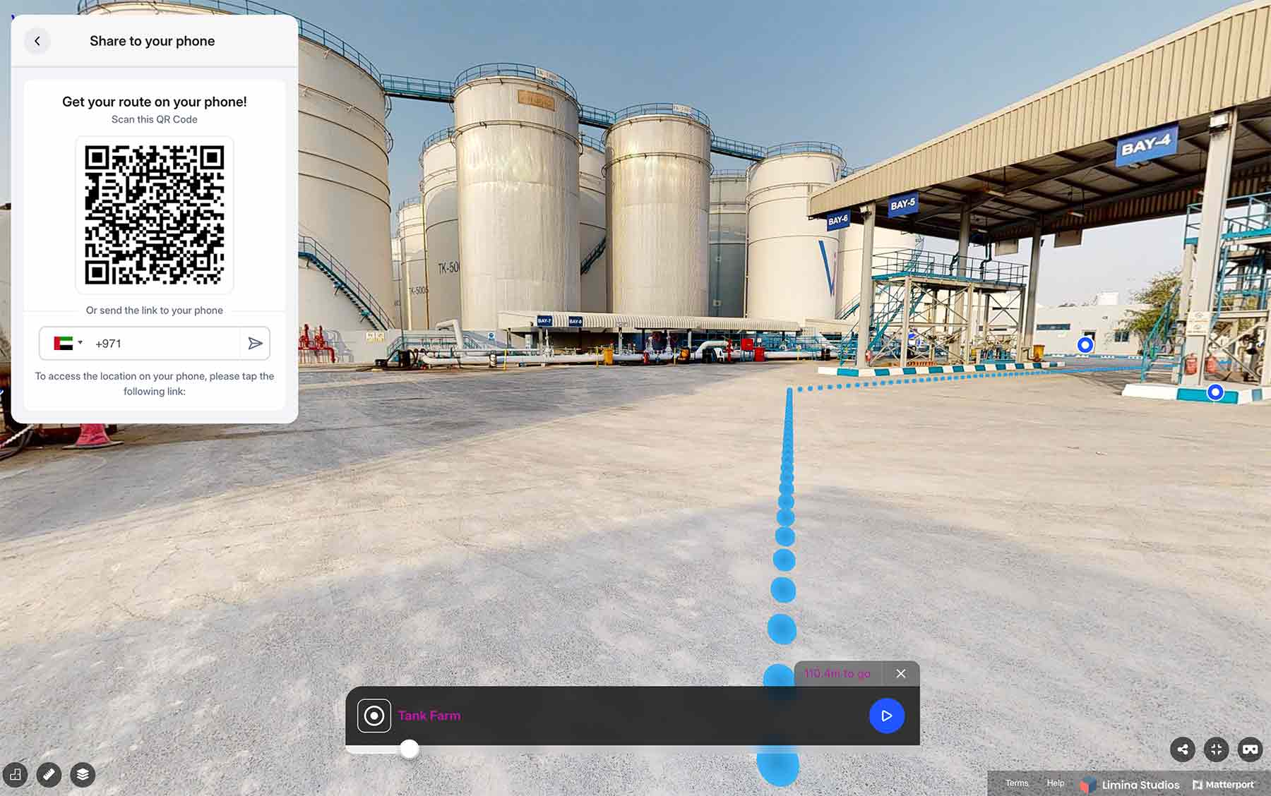 Limina Studios partnered with Valor International Holding to help facilitate their operational site and integrated a safety-training program into an engaging augmented reality-powered navigation experience. Users can visit the industrial grounds, process units, and key safety zones with precision and ease using augmented reality wayfinding, web navigation, and integrated safety-training scenarios in the virtual tour. The addition of this platform for AR site navigation brings more than remote access with a streamlined link to stakeholders’ safety protocols through guided training moments into site presentations but represents Valor’s commitment to transparent, cutting-edge technology in the oil and gas sector.